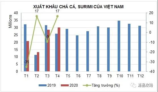 据越南海关统计,在2020年的前四个月,越南的鱼类产品和鱼糜产品出口额超过9300万美元,比2019年同期下降8%。