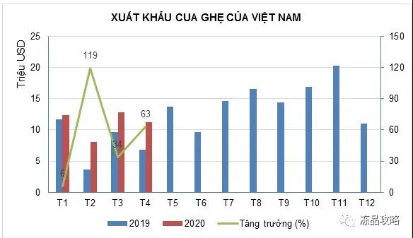 今年前四个月,中国在越南螃蟹进口量中排名上升。尽管在Covid疫情的背景下,中国从越南的进口仍有所增加。越南对中国的螃蟹出口额超过1300万美元,比去年同期增长近394%。