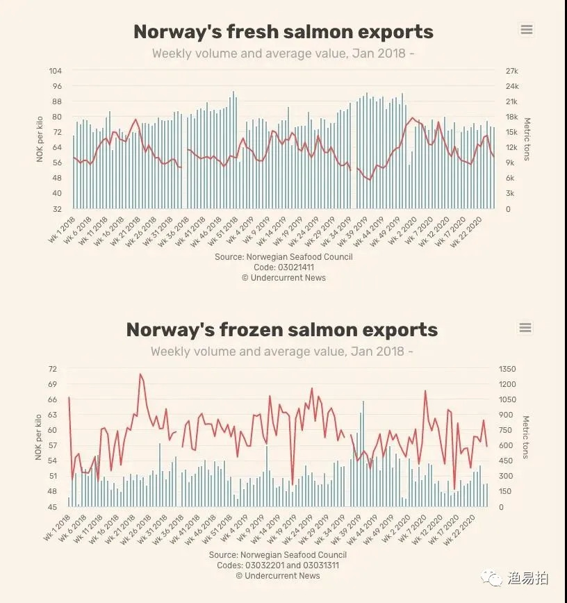 “事实上,对主要三文鱼消费国(法国、英国、意大利、德国)的出口在过去两个月里每周都在增长。