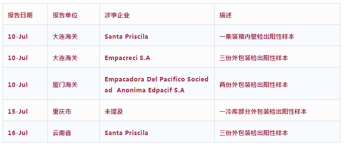 截止昨日,针对涉事三家企业及产品,全国检出五批阳性样本案例,统计如下: