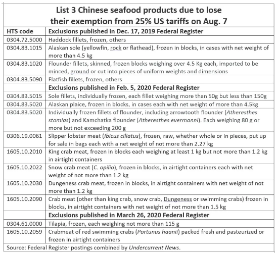 8月7日前暂时不被征收关税的中国海产品目录