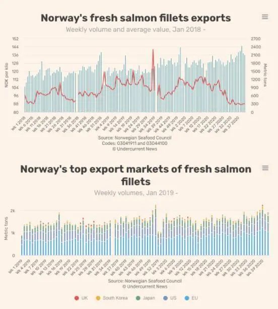 第41周挪威对亚洲鲑鱼出口量增加,中国鲜鱼进口增长33%