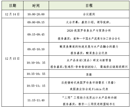 为深入贯彻落实党中央、国务院关于统筹推进新冠肺炎疫情防控和经济社会发展工作、稳定外贸基本盘的决策部署,在鼓励水产品进出口企业拓展国际市场的同时,全力支持适销对路的出口水产品开拓国内市场,帮助企业增加销售渠道,减少水产品出口面临的巨大压力,降低新冠疫情对企业造成的损失,保障行业健康可持续发展。为此,我会积极搭建水产品产销对接平台,助推水产企业转型发展渡难关,拟定于2020年12月15日在广东茂名举办“2020中国罗非鱼产业发展大会”。