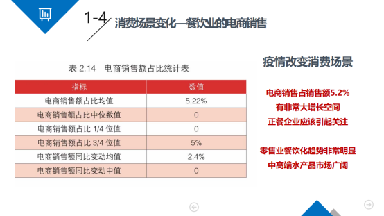 据统计,餐饮业的电商销售占销售额的5.2%,送餐占销售额比例超过5%;估计在未来5年,餐饮企业的电商和送餐占销售额比例可能达到15%-20%左右,有非常大的增长空间。超市零售餐饮化趋势非常明显,中高端水产品市场广阔。