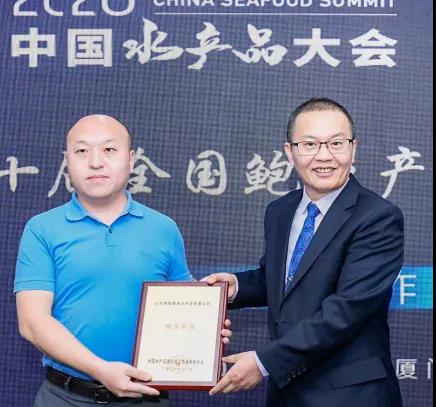 崔会长为新加入鲍鱼产业发展研讨会的副会长单位、理事单位代表颁发入会奖牌。