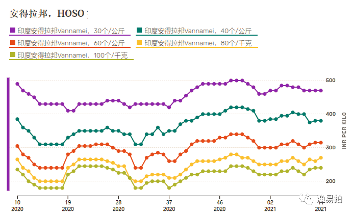 但根据aquatech和农业服务公司Aquaconnect提供的数据,2021年第11周,印度安得拉邦,古吉拉特邦,西孟加拉邦,较大的南美白虾虾价格持平 。