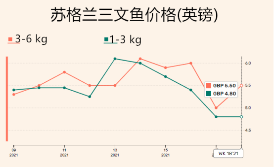 上周是每公斤5.30英镑,本周维持在每公斤4.75-4.85英镑不变。