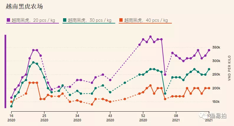 越南南美白对虾17周价格再次下降,黑虎虾价格持续回升