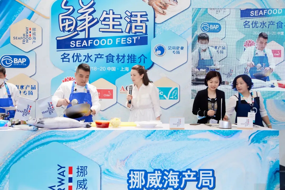 为能更好、更精准、更全面、更多样地向展会专业观众推介国内外名优水产食材,我会不但在活动开始前做了大量的筹备工作,还特别携手七大官方机构,精心打造了挪威海产局专场、BAP安心水产专场(全球水产养殖联盟GAA)、舟山水产品推介专场(舟山商务局)、澳大利亚新南威尔士州专场(澳大利亚新南威尔士州政府第一产业部)、智利专场(智利驻上海总领事馆商务处)、加拿大大西洋商会专场、ASC会员企业专场等七场主题活动;同时也为自家协会会员策划了CAPPMA会员企业专场。为期两天半的活动,不仅线下吸引了上千专业观众驻足、品鉴、供采洽谈,同步的线上直播也在行业内外产生了良好的品牌传播效果。