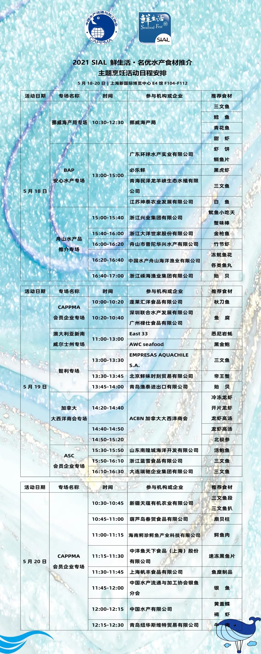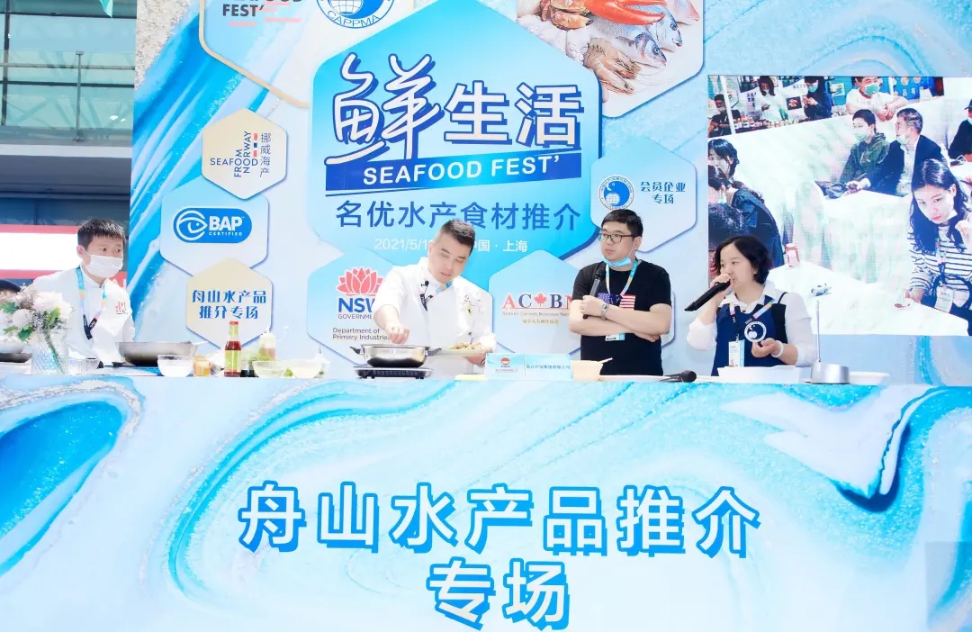 2021年5月18日上午10点30分,由中国水产流通与加工协会与SIAL China组委会共同主办的“第九届SIAL 鲜生活·名优水产食材推介”主题烹饪活动在上海新国际博览中心E4馆水产专区顺利拉开帷幕。