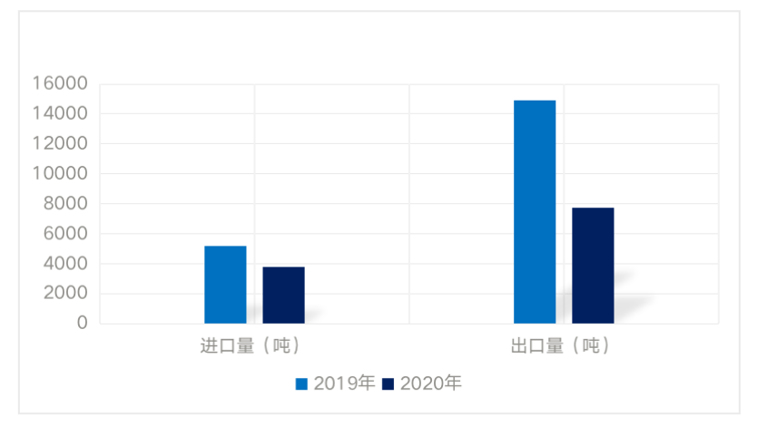 图7:2019~2020年全国小龙虾进出口量(吨)