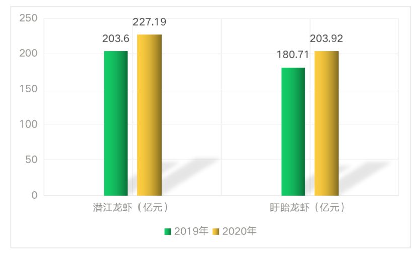 图9:2019~2020年“潜江龙虾”和“盱眙龙虾”品牌价值