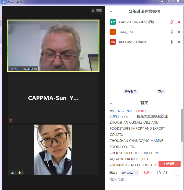 此外,来自欧盟的买家也陆续上线与舟山水产企业进行了对接,助力舟山水产品顺利出海。