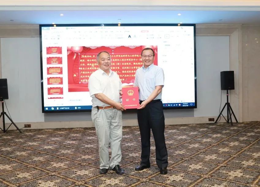 中国水产流通与加工协会会长崔和为小龙虾产业分会新任会长唐建清颁发会长证书