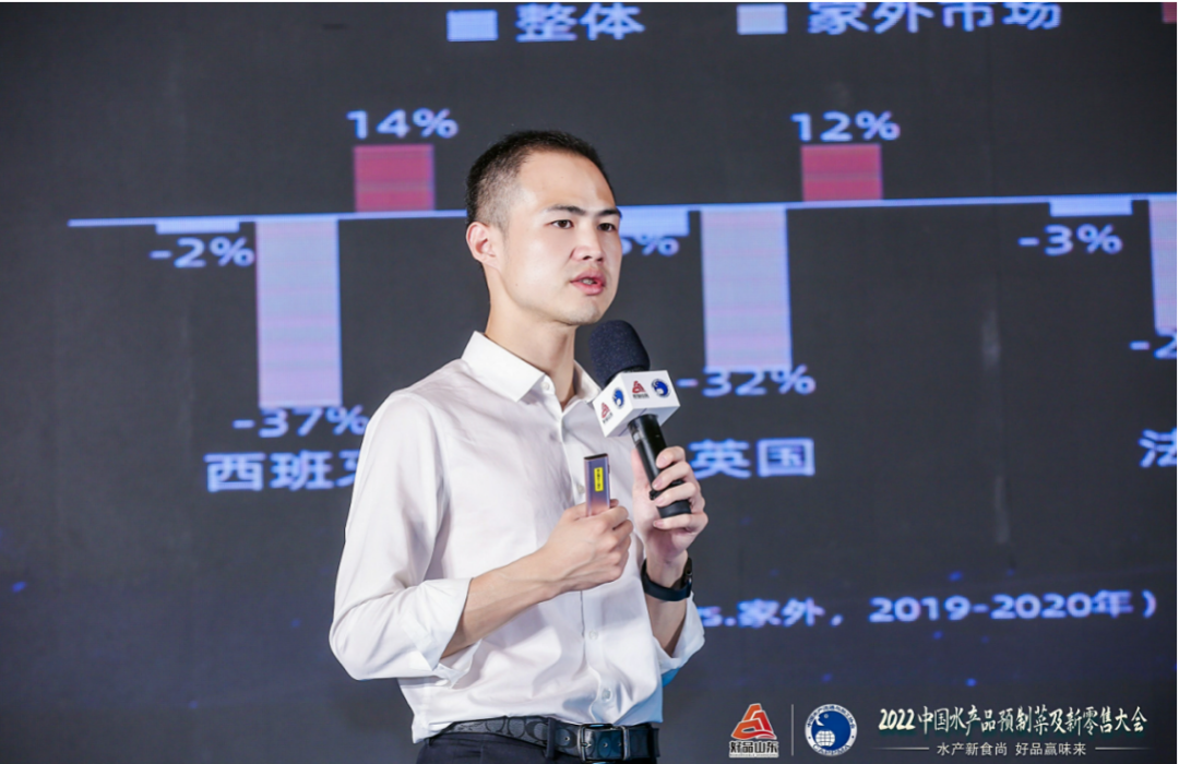 下午的新零售主题专场由中国水产流通与加工协会秘书长助理孙雅玲主持。天猫生鲜行业商家运营负责人镭戈从全球食品生鲜行业消费趋势、新趋势下的启示与机会、我们应如何应对机会和挑战三个方面作了《天猫预制菜行业趋势展望分析与策略分享》。他认为,全球食品生鲜行业消费趋势呈现五大趋势:一是自2020年起,全球快消市场高速增长,中国线上渠道领导大盘;二是家内场景多元化;三是生鲜场景全面升级化;四是消费观念更立体,消费链接更多维;五是环保行动日常化。同时,他还指出了新时代食品生鲜十大消费趋势:极致口味、健康成分、新鲜短保、品质食材、精致懒家、解压疗愈、心选食礼、兴趣破圈、国潮新风、低碳环保。
