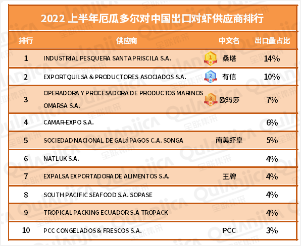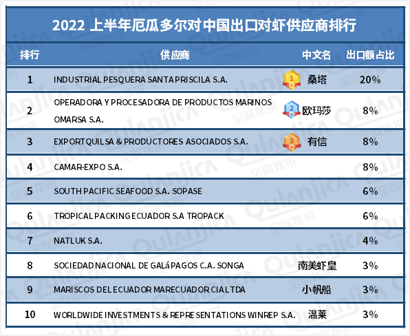 2022上半年厄虾对华出口供应商排名
