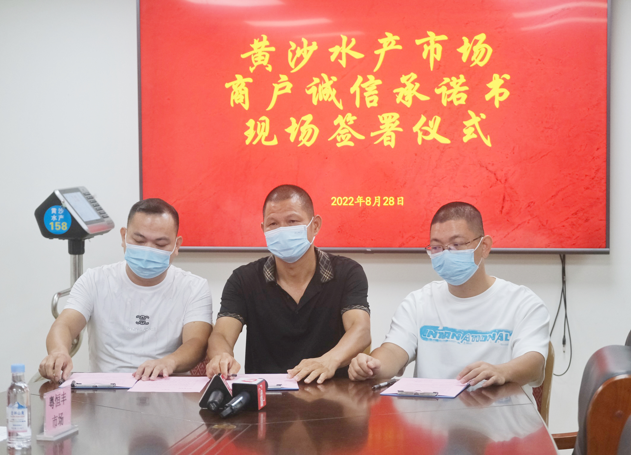 开渔期来临,中秋假期即将到来,海鲜水产进入销售旺季。8月28日,在农业产业化国家重点龙头企业广州黄沙水产市场,三家市场经营商户代表公开签订诚信经营承诺书,公开承诺诚信经营、明码标价、计量精准,向广大市民提供安全放心优质的水产品。这是黄沙水产市场规范场内经营户管理和保障消费者合法权益,增强服务保障“粤港澳大湾区菜篮子”能力,与商户共同维护黄沙水产品牌的一个缩影。