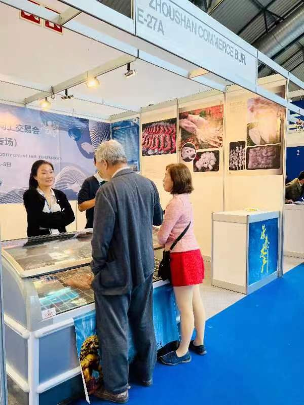 为促进舟山企业外贸发展,鼓励企业走出去、抢订单,10月4-6日,2022年浙江(舟山市)出口网上交易会(欧盟站-水产品专场)紧密结合同期举办的欧洲第二大专业水产展——西班牙维戈国际冷冻水产展览会,顺利举行线上线下联展。本次网上交易会由舟山市商务局主办,舟山市贸促会协办,浙江时代国际展览服务有限公司承办。展会期间,实际(含意向)成交额超498万美元,参展企业主推的章鱼、鱿鱼、虾仁、贻贝等水产品受到不少国际买家关注。
