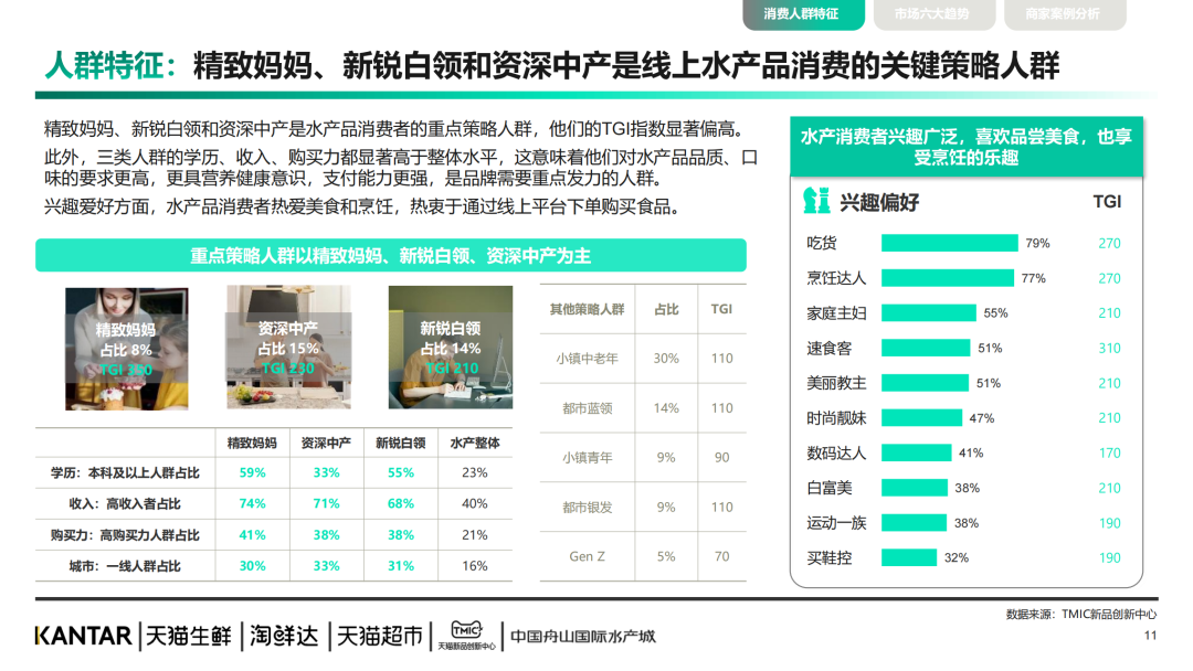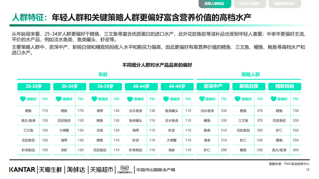 在11月17日于厦门召开的中国水产品大会“水产品消费论坛”上,阿里巴巴B2C生鲜行业负责人杨光分享了《2022水产行业趋势报告》。该报告由天猫生鲜联合KANTAR、淘鲜达、天猫超市、天猫新品创新中心及中国舟山国际水产城共同出品。经商报告出品方同意,现将报告原文分享。