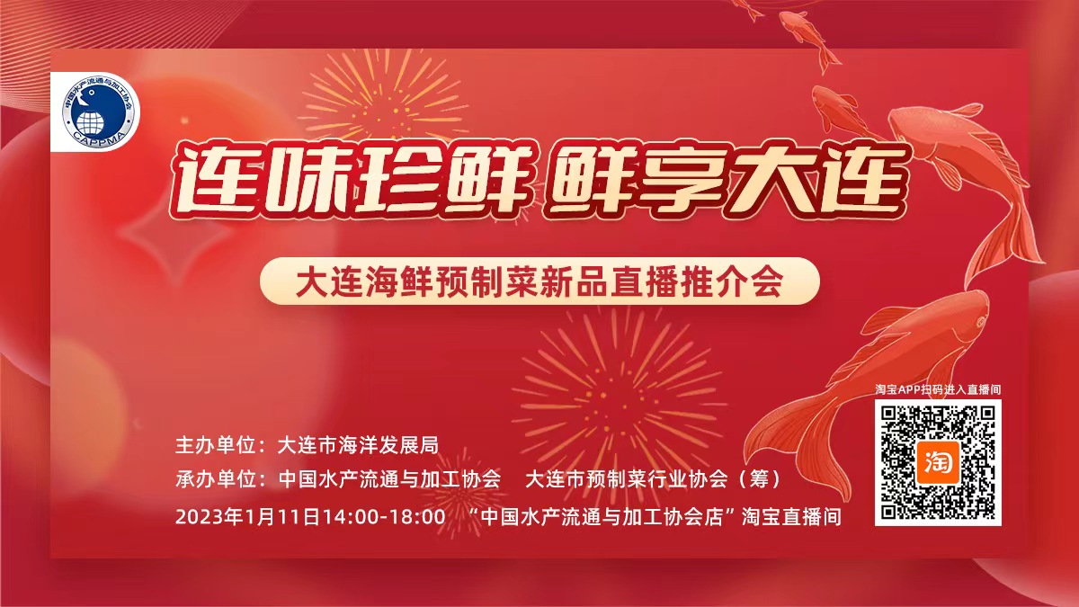 2023年1月10日,大连海鲜预制菜直播推介系列活动以首场“中国水产品”微信视频号直播活动拉开帷幕。本次系列活动由大连市海洋发展局主办,中国水产流通与加工协会、大连市预制菜行业协会(筹)共同承办,以“连味珍鲜·鲜享大连”为主题,借力春节消费热季,将大连海鲜预制菜品牌源头企业直播沙龙、新品直播推介会、集中供采对接专场、品牌云展交易会等优质活动融合举办,进一步推动大连海鲜预制菜品牌宣传,实现多渠道品牌展示,促进供采双方高效对接,同时通过大连海鲜预制菜集体上新、大连海鲜预制菜品牌企业推介,让消费者感兴趣听、有兴趣买,让采购商好奇听、主动采,进而促成从供应商到采购商再到消费者的各方共赢。