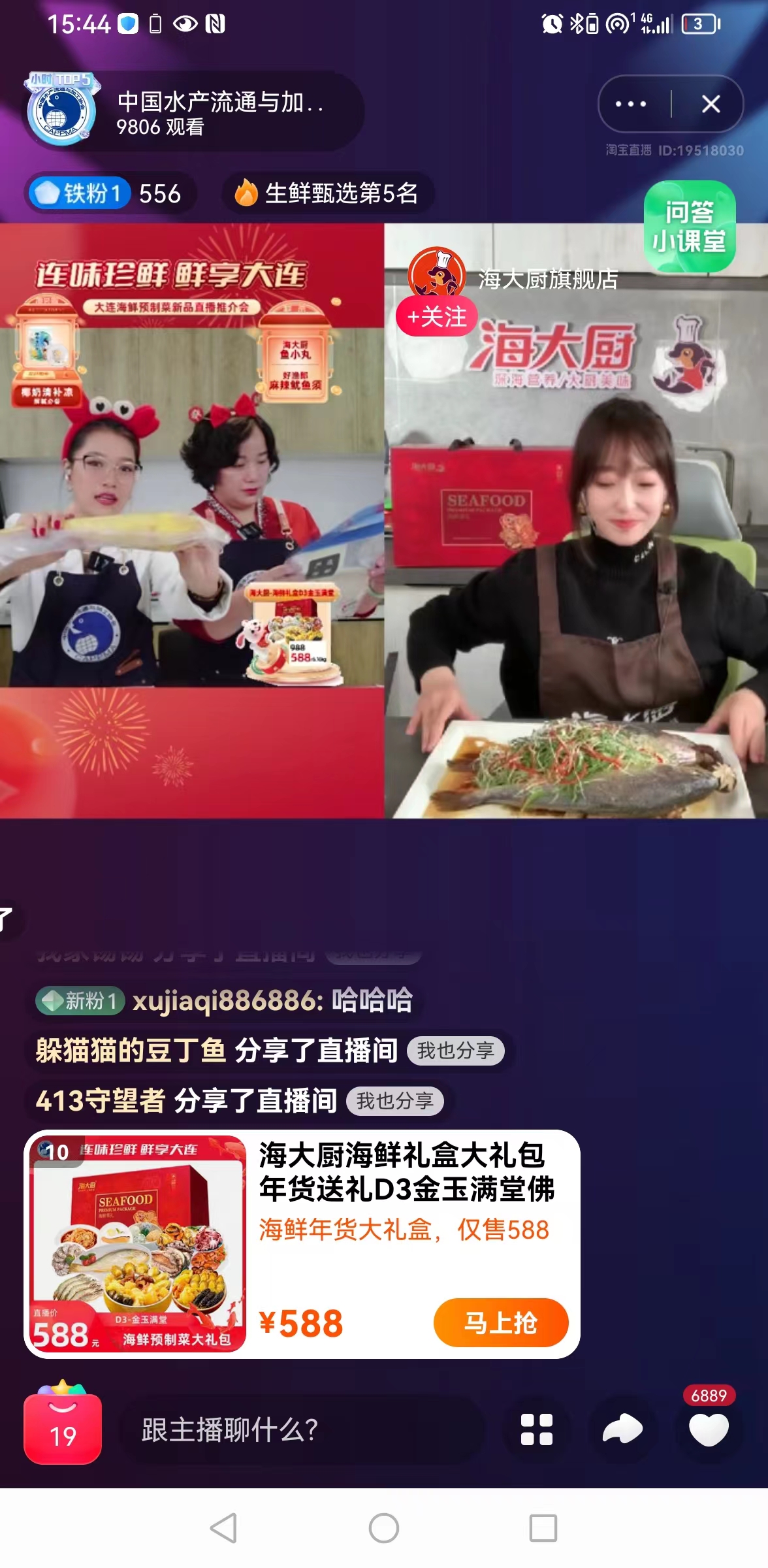 11日下午2点,“辽渔·远洋”“獐子岛”“海大厨”“浩和”“金葵”“好渔郎”“水一方”“长参岛”“林家铺子”等大连名优品牌亮相“中国水产流通与加工协会”淘宝直播间举办的大连海鲜预制菜新品直播推介会,并在云端完成了大连海鲜预制菜兔年新春礼盒上新。本次淘宝直播在宣传大连海鲜预制菜的同时,也为大连海鲜预制菜产品创造了与消费者近距离接触的机会。