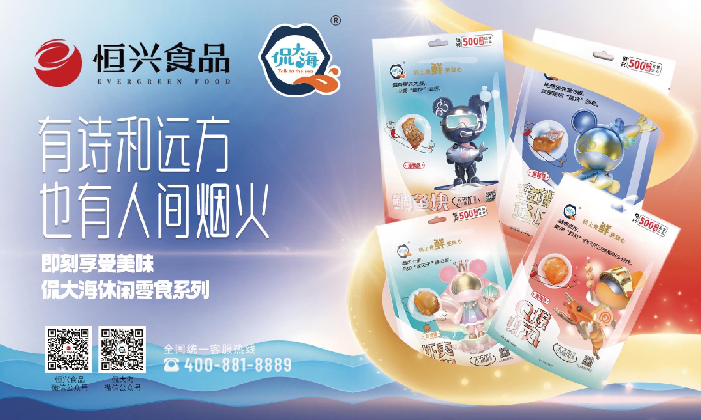 “侃大海”将恒兴食品的品质标杆产品进行了全新的品牌形象包装升级,并与国内知名潮牌“星际熊”进行联名,把充满诗意与烟火味的宣传语与色彩明快、设计感十足的包装进行结合,依托恒兴全产业链的食品安全质量管控体系,做到每款产品都可溯源。本次还公布了恒兴预制菜行业元宇宙形象,并确认了将以此元宇宙形象参与8月底深受中国年轻人喜欢的ChinaJoy线上展会。