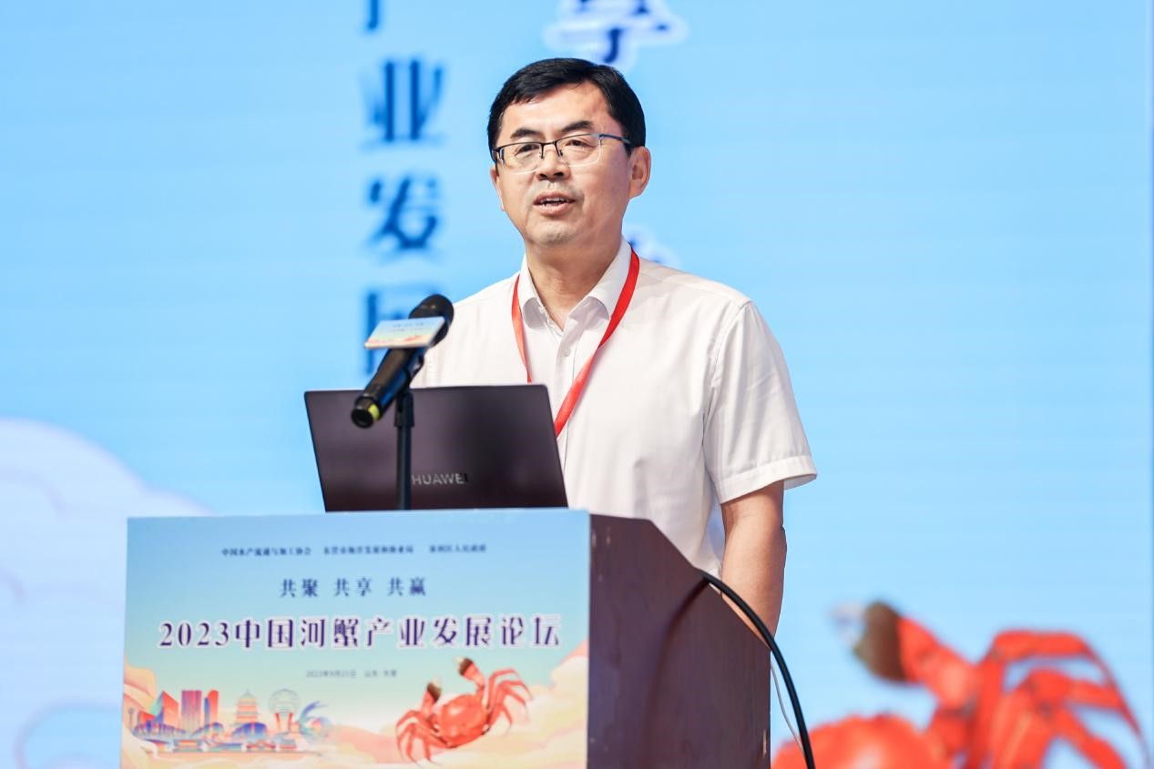 山东省农业农村厅总农艺师郭鹏致辞表示,山东地处黄河下游,濒临黄、渤海,广阔的滩涂面积,较发达的内陆水系,优良的地理环境,为河蟹生长提供了较好的条件。随着山东省内河蟹养殖产业发展的生态化、规模化水平不断提高,河蟹养殖越来越注重绿色健康生产,养殖技术水平不断提高,山东河蟹产业在满足消费多样化、渔业增效、渔民增收等方面的社会功能愈发突出,为乡村振兴和渔业经济发展做出了积极贡献。尤其近二十年来,山东依托自身良好的河蟹产业发展基础,积厚成势,走出了一条从小到大、从弱到强的跨越式发展道路。2022年,山东全省河蟹养殖产量2.14万吨,已成为全国第五大优质河蟹主产区。