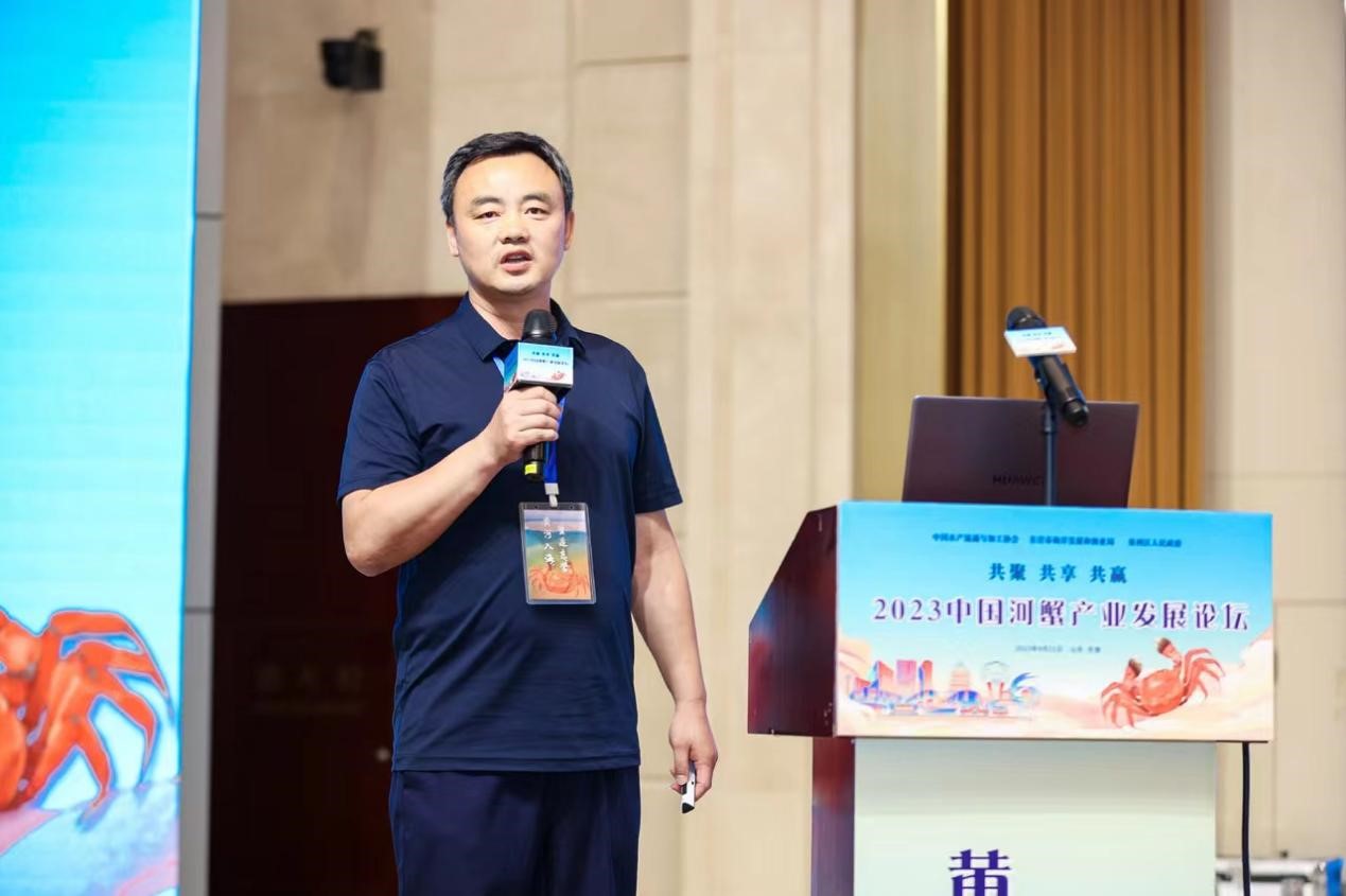 中国渔业协会河蟹产业分会会长李晓东作《中国河蟹产业发展现状、挑战及对策建议》主题演讲