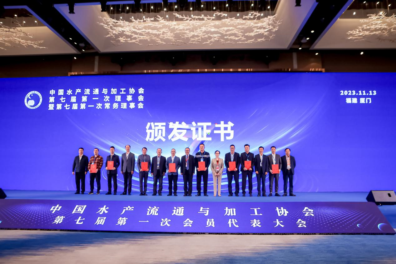 2023年11月13日,中国水产流通与加工协会第七届第一次会员代表大会在福建厦门顺利召开,来自全国28个省、市、自治区的会员单位代表参会。会议选举产生了新一届理事会、监事会成员。