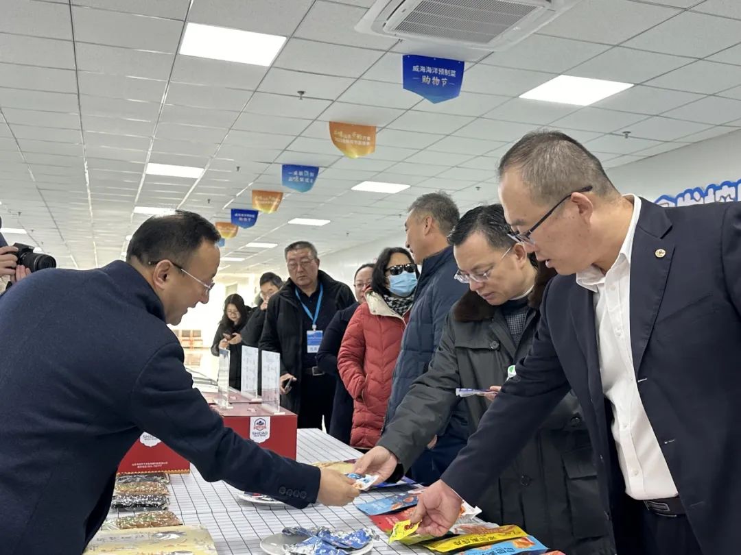 26上午,部分参会代表参观了中国水产流通与加工协会-直播电商运营基地、威海市世代海洋生物科技股份有限公司和威海特产好品云仓。
