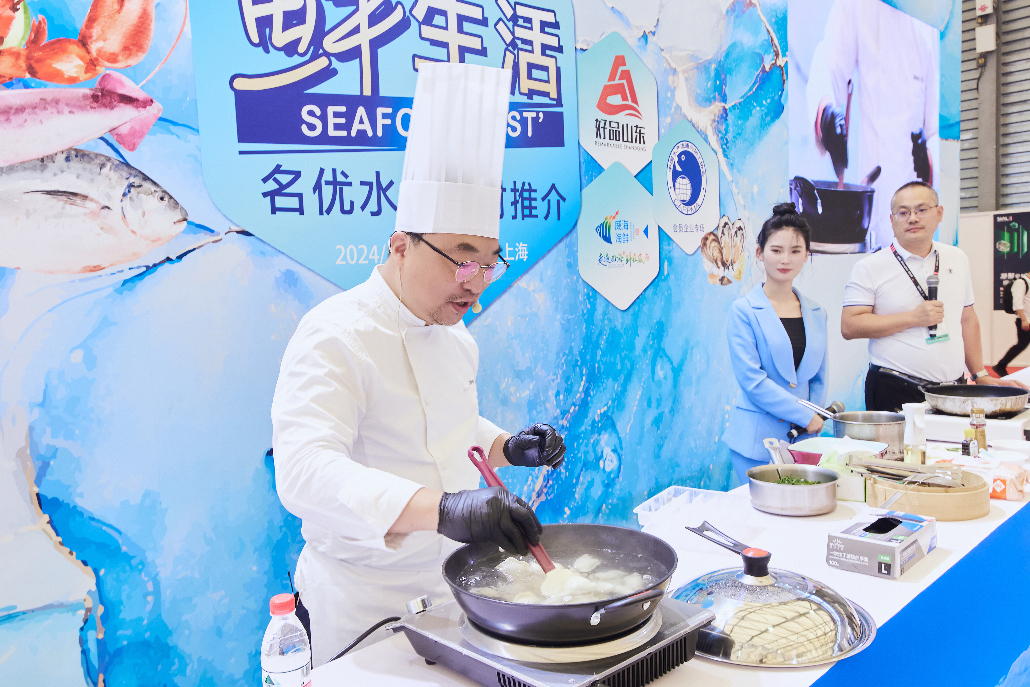 走遍四海,鲜在威海!5月28日,由威海市海洋发展局主办,中国水产流通与加工协会承办的威海海鲜品鉴会于2024 SIAL西雅国际食品展(上海)开幕首日,在上海国际新博览中心SIAL鲜生活活动区(展位号E4E090)成功举办。本次活动以威海海鲜为主打食材,通过精心烹饪与创新搭配,为现场嘉宾呈现了一场别样的美食盛宴。经过特邀名厨的巧手,“凉拌海带丝”“鲅鱼水饺”“速食海藻汤”“椒盐皮皮虾”“盐烤鲭鱼块”“麻辣花螺”等多款佳肴亮相活动现场,吸引了众多海鲜美食爱好者及采购商的目光。