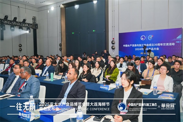 2024年10月30日,由中国水产流通与加工协会、华墨集团·上海华好会展有限公司、大连国际海鲜节组委会、佳选(大连)海鲜节管理有限公司共同举办的2025亚太水产食品博览会暨大连海鲜节青岛发布会在青岛金茂万丽酒店召开。国内外企业、行业协会代表、合作机构负责人和媒体记者参加了发布会,近300人共同见证了博览会正式启动。