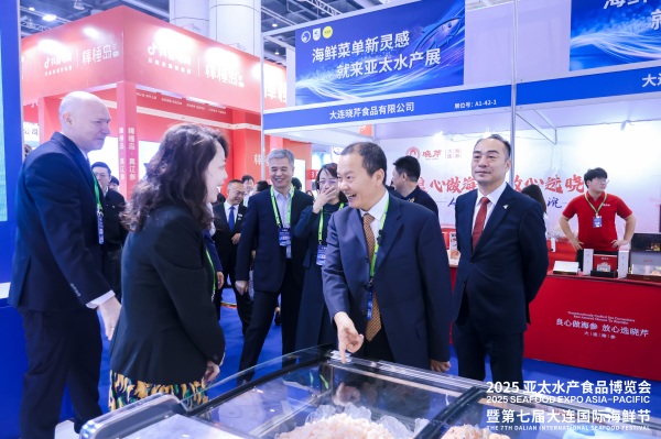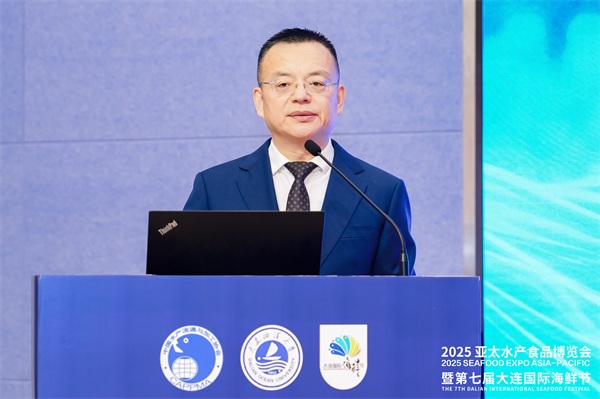 开幕式上,大连市副市长周振雷致欢迎辞。他介绍,大连位于北纬39度,海岸线总长2211公里,海域面积约3万平方公里,自然环境条件优越。2024年,大连水产品总产量273万吨,渔业经济总产值830亿元,年贸易量达500万吨,居全国同类城市前列。当前,大连大力发展海工装备和智慧渔业,推动海洋渔业向信息化、智能化、现代化转型升级。未来希望与各方携手共进,深化水产流通与加工领域合作,共同为亚太地区渔业经济繁荣发展贡献更大力量。