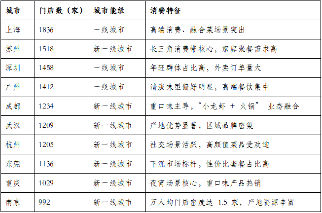 表2:2025年小龙虾餐饮核心城市门店数(单位:家)(数据来源:雀巢专业餐饮)