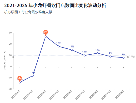 表3:小龙虾餐饮门店数波动细化表(2021-2025年)