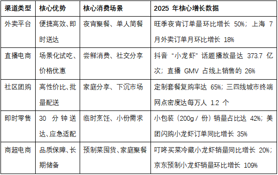 3.渠道全域协同发力,精准适配区域消费习惯:线上强化“直播电商+即时零售+社区团购”组合,直播电商聚焦场景化试吃(如小龙虾融合菜制作),即时零售侧重小包装应急产品(200g/份调料、预制菜),社区团购在下沉市场推出家庭分享装,依托65%的高复购率扩大渗透。线下优化业态布局,核心城市发展“小龙虾+热卤+茶饮”的20-50平米复合小店,提升坪效;华东、华南强化高端餐饮与KA渠道合作,西南深耕火锅门店与社区店,下沉市场布局县域商超与乡镇夫妻店,简化包装与操作流程,适配“加热即食”需求。