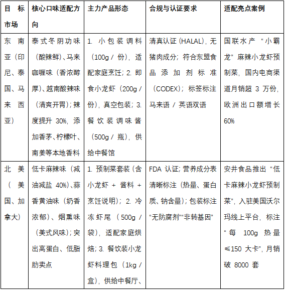小龙虾出海正迎来“品类认知提升+中式餐饮出海”双重机遇,核心市场需求明确,产业基础支撑有力。核心市场潜力:东南亚(6.95亿人口、26 岁年龄中位数)为首要目的地,餐饮消费场景丰富,辣味接受度高,小龙虾作为“中式特色海鲜”适配性强。东南亚小龙虾进口额逐年提升;北美、欧洲健康食品需求旺盛,有机、无添加小龙虾产品溢价空间达 30%;日韩偏好精致餐饮,小份化、高颜值小龙虾产品适配性强。产业出海基础:中式餐饮出海趋势明显,2025年海外中餐馆数量超60万家,为小龙虾菜品与调料输出提供流量背书;冷链物流升级,中国至东南亚、北美西海岸的冷链运输时效缩至7-10天,产品新鲜度损耗率控制在8%以内。政策与市场机遇:RCEP协议推动区域贸易便利化,东南亚进口关税降低至5%-10%;海外华人社群规模达6000万,形成稳定的基础消费群体;“中国美食出海”战略支持,多地政府为小龙虾出口企业提供退税、认证补贴,降低出海成本。
