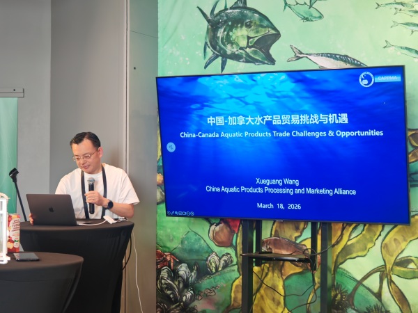 3月20日,第二届北美—亚洲水产大会2026年多伦多站在加拿大成功举办。大会主旨报告环节,中国水产流通与加工协会副会长兼秘书长王雪光作《蓝色转型:中国可持续水产品的探索与实践报告》,分享了中国水产行业绿色发展成果与经验。展览展示环节,福州泽霖食品有限公司和江苏海福特海洋科技股份有限公司集中展示了最新水产加工技术、优质水产品及一体化供应链解决方案,吸引众多北美采购商、行业同仁驻足洽谈,现场达成多项初步合作意向。